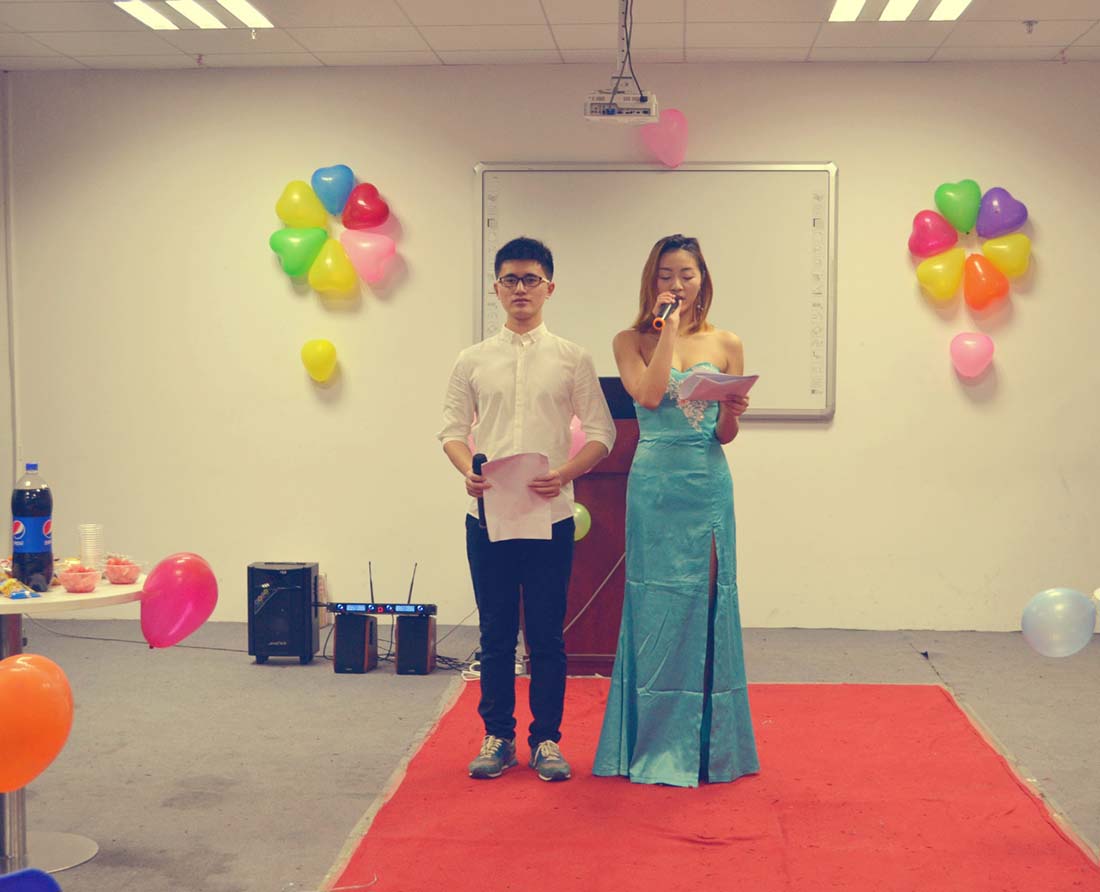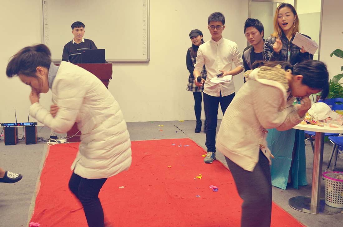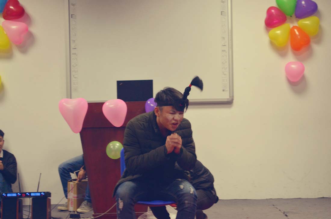 在看过了一轮非常特色的表演之后,就是游戏互动环节,这个时候大家都放松了起来,更是胆子大的将我们现场的教员及班主任们推了上去,一起参与了“大象鼻转圈”的游戏,仅仅只是捏着鼻子转圈,我们的很多同学和教员老师们就在现场搞笑连连,不是转圈的时候两个人碰到了头,就是坐气球的时候一屁股下地后落了个空。很多同学玩下来根本是找不到东南西北,现场气氛好不热闹!
