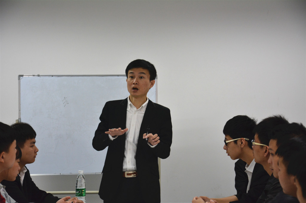 嗨竞技刘总一行在就业老师江小龙的陪同下,给在会议室等待的二十名同学详细介绍了公司的各项情况,招聘岗位以及福利待遇等,同学们也积极主动的与企业方进行了交流。